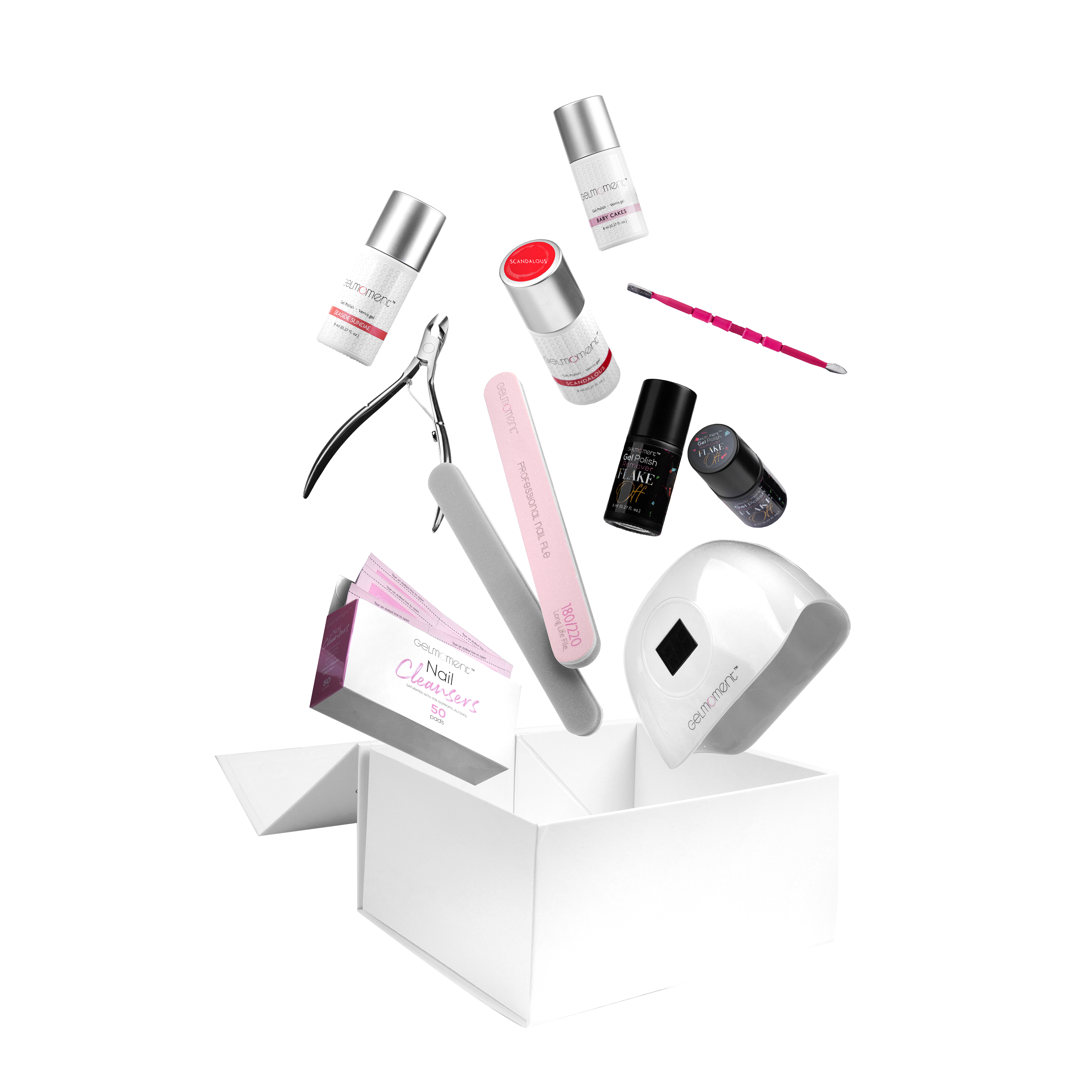 The Deluxe Customer Kit is designed for those who are comfortable in applying GelMoment Gel Nail Polish and are ready to use our Deluxe Four Finger Lamp, which works by automatic sensor!
