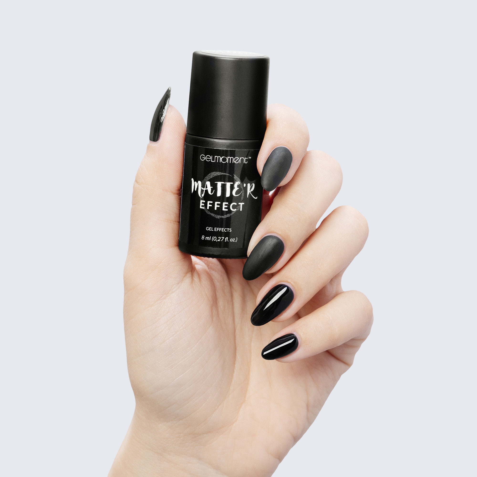 Apply matte'r effect top coat over any gelmoment gel polish and cure using a gelmoment LED lamp. Mattify any of our beautiful glossy shades to create endless possibilities!